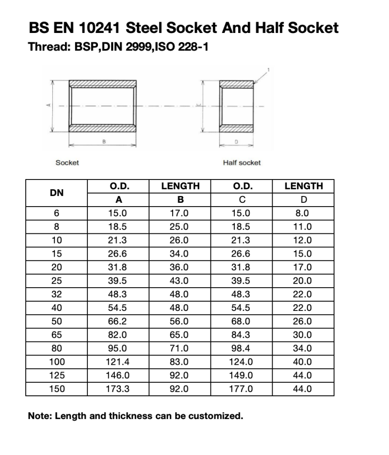 EN 10241 socket is a high-quality pipe fitting suitable for threaded connection requirements of European national standards.